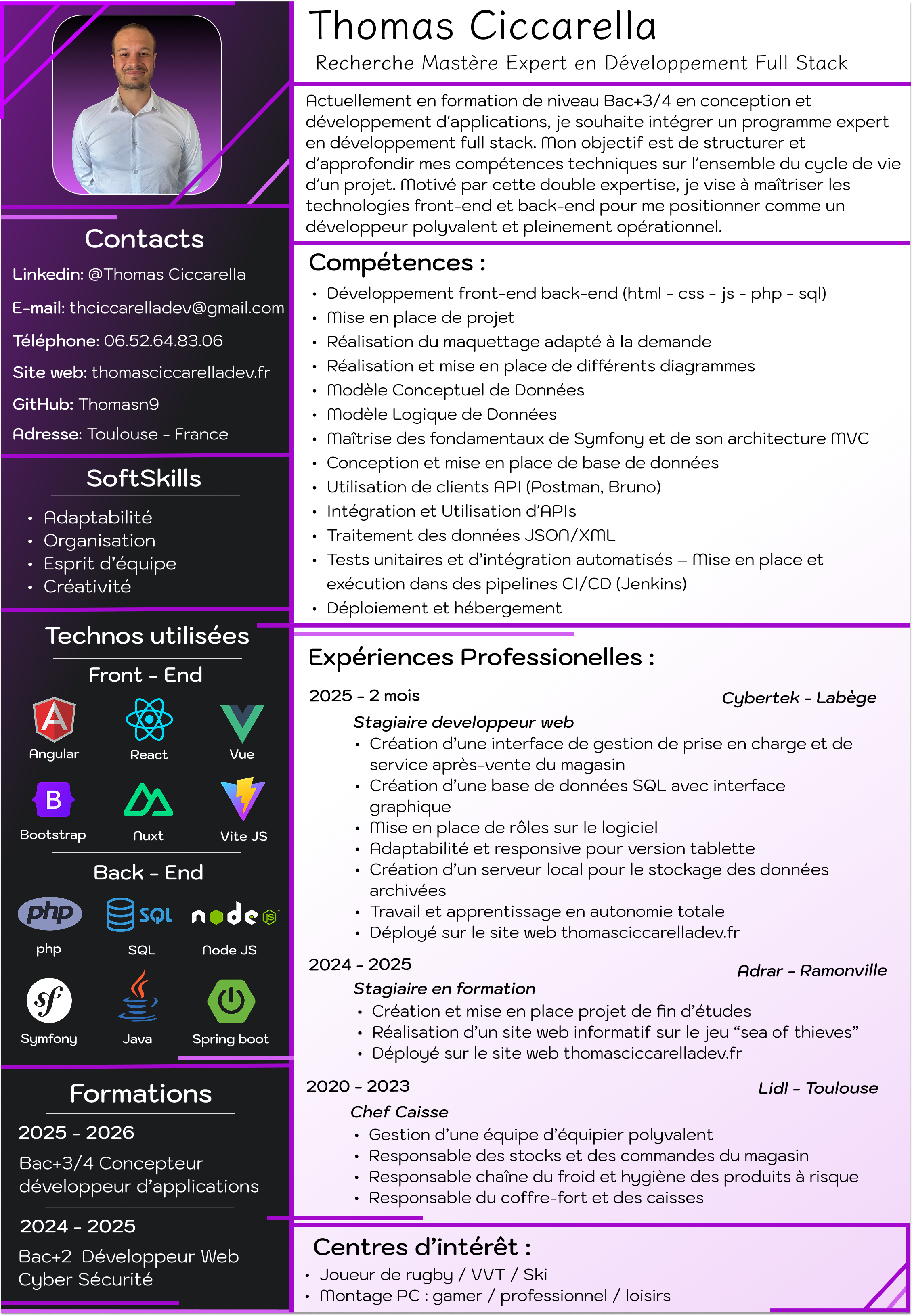 PHP pour développer des fonctionnalités côté serveur, comme la gestion des utilisateurs, l'envoi de-mails ou le traitement de formulaires. C'est un langage puissant qui me permet de créer des sites web dynamiques et personnalisés.